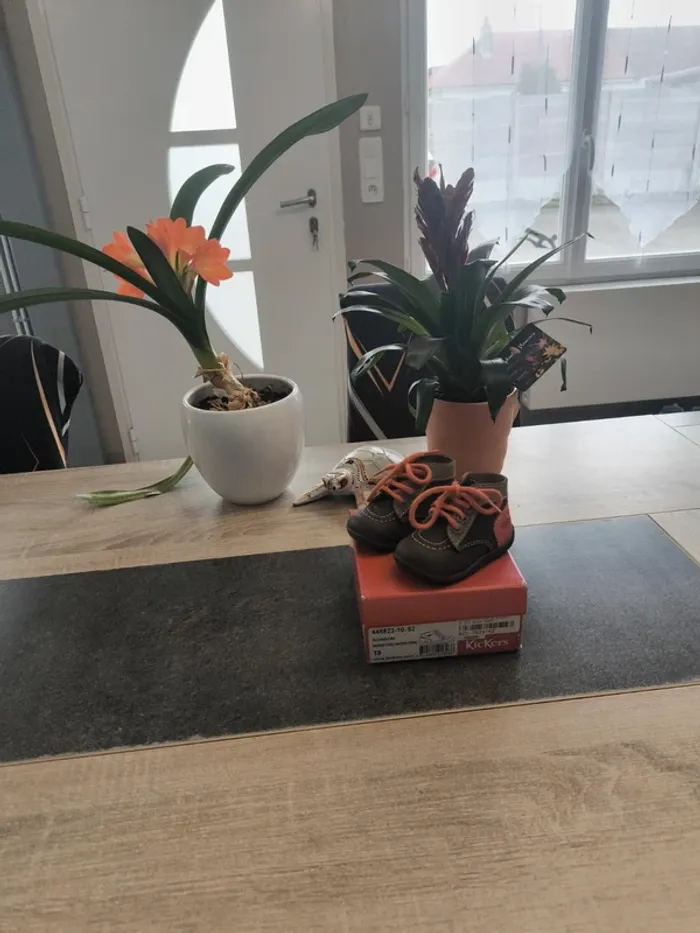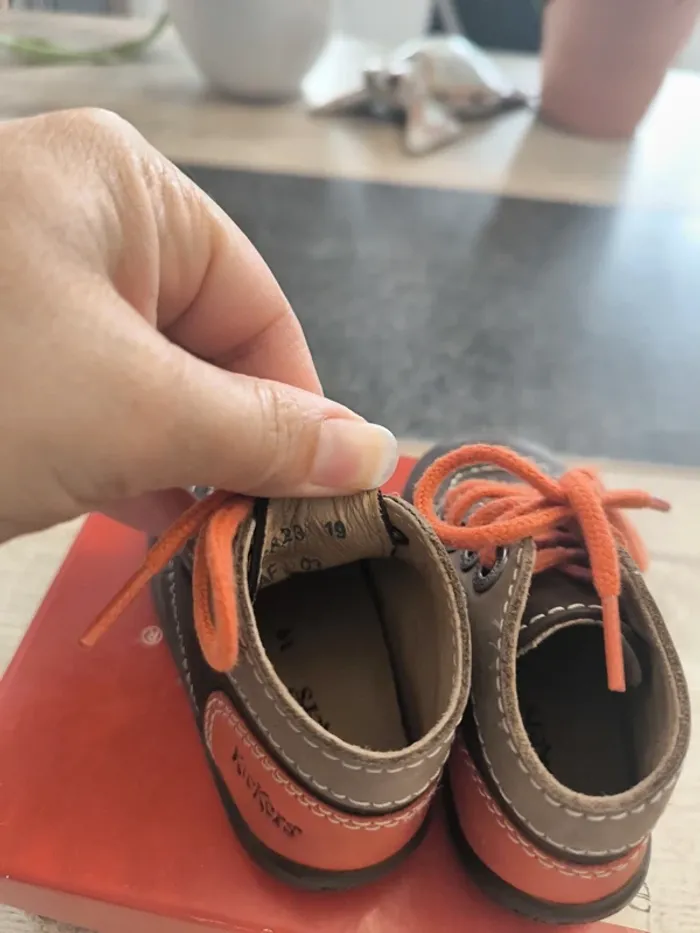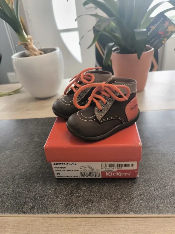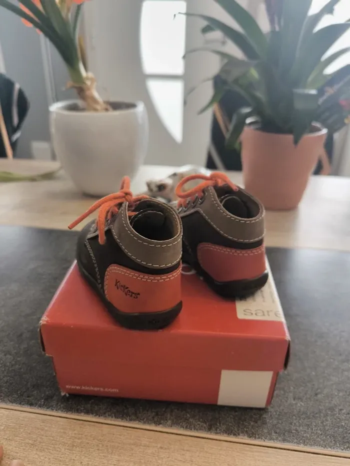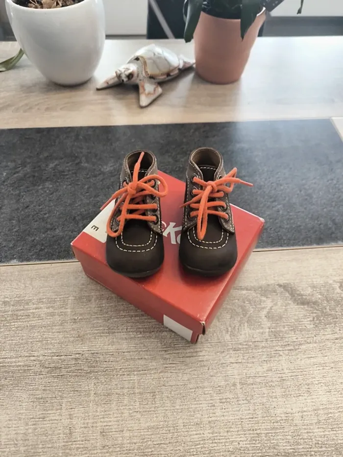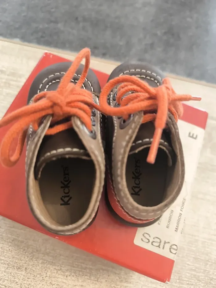Superbe paire de chaussures montantes confortable garçon pointure 19 de la marque Kickers en parfait état avec motif impeccable et à lacets. Top qualité et couleurs 🤩☺️ topissime et rarement porté. Vendues dans la boîte d'origine !