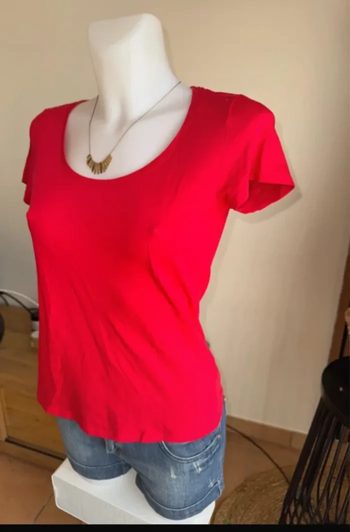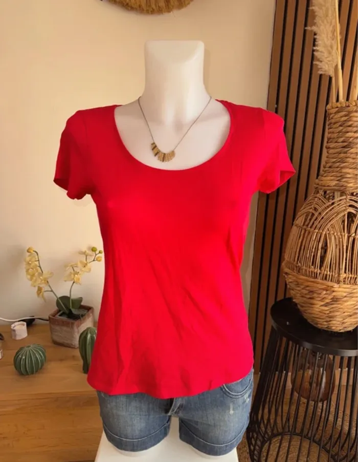 T-shirt rouge Manches courtes Col rond Très peu porté Matière coton #labrune_33femme #labrune_33femme38 #labrune_33femmetshirt 📤 envoi rapide # dressing trié par genre et taille Réduction sur lot activée