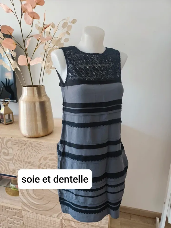 100% soie et empiècement broderie dentelle coton