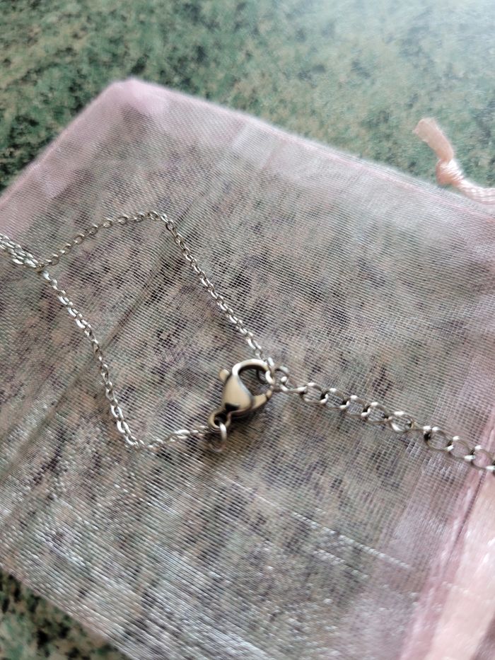 Argenté Longueur chaîne 45 cm au plus long, 40 cm au plus court Pendentif 1,5 cm de diamètre