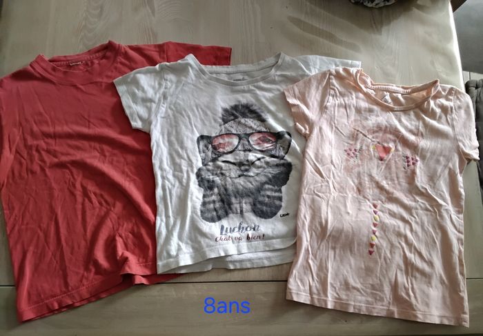 Lot de 3 t-shirt fille 8ans Le rouge sans marque Le chat, luchon Le tigre, tex