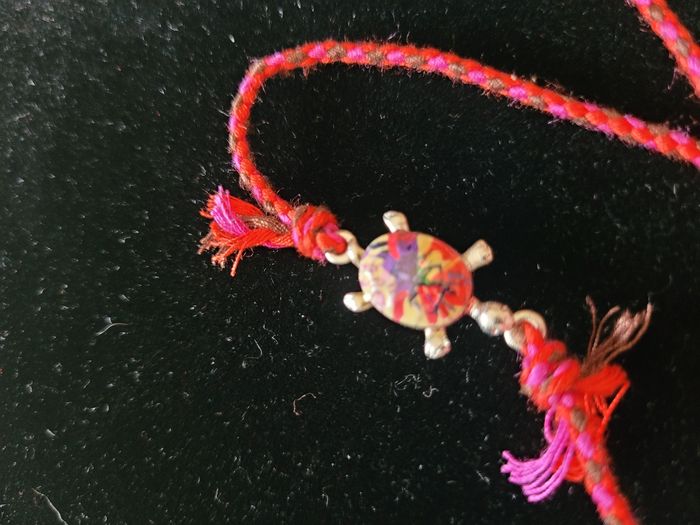 Cordon coton multicolore (rouge, rose, marron) Diamètre au plus grand 8 cm Neuf, jamais porté