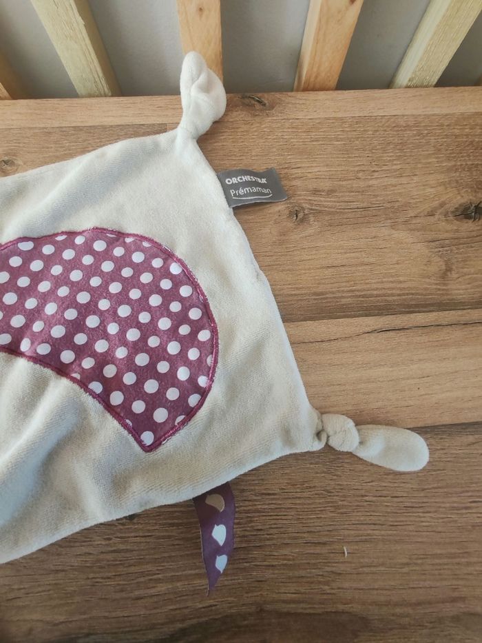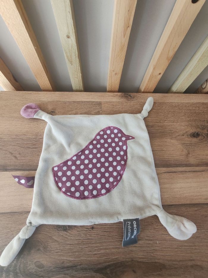 Doudou plat oiseau gris prune violet ORCHESTRA PREMAMAN Tbe Étiquette marque présente 9.90 euros Envoi en relais
