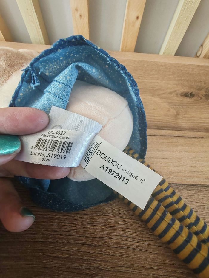 Jolijou - Poupée Chiffon Fille - Poupée Tissu Céléeste - 30 cm environ Bleu - Demoiselle Vintage - Tbe Étiquette marque présente 18 euros envoi en relais