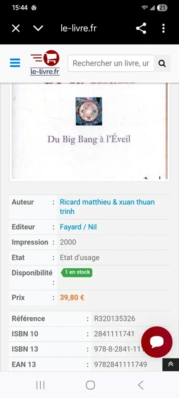 Du Bing Bang à l Eveil... Matthieu Ricard Xuan Thuan Trinh Soyez le premier à donner votre avis On entend souvent dire que les rapprochements entre la science et la spiritualité sont voués à l'échec, car ces deux disciplines sont trop étrangères l'une à l'autre. Comme l'observait le grand physicien Niels Bohr : "Le but de la science est d'augmenter et d'ordonner notre expérience et non pas de révéler l'essence réelle des phénomènes." La science finit donc par se heurter à des obstacles qui lui signalent que la nature de la réalité n'est pas ce qu'elle croyait. C'est dans cet aspect, révélé par la mécanique quantique et la relativité, que la science peut se rapprocher du bouddhisme puisqu'il s'interroge avant toute chose sur la nature ultime de la réalité ou de l'irréalité des phénomènes et de la conscience et traduit ses conclusions par une approche pragmatique du vécu de l'existence. Très bon état Envoi rapide et soigné Vous pouvez si vous le souhaitez composer un lot, ainsi pour ne paierez qu une seule fois les frais d envoi...👍🌞😸