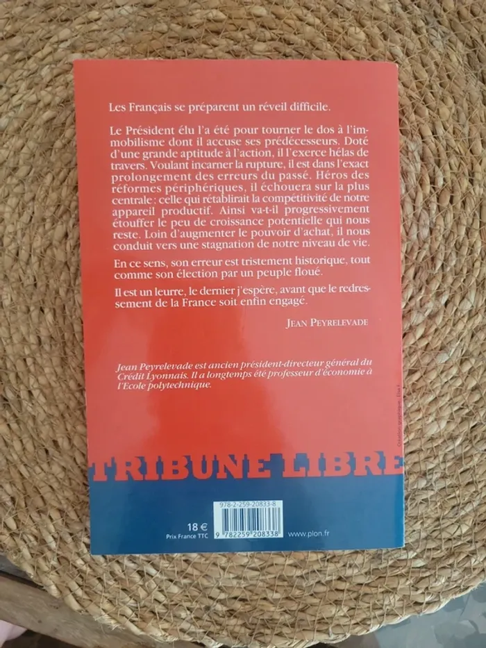 Nicolas Sarkozy semble avoir réponse à tout, surtout en matière d'économie. Les limites et les erreurs de son système sont ici analysées par Jean Peyrelevade, l'un des acteurs majeurs de l'économie française. Les Français se préparent un réveil difficile. Le Président élu l'a été pour tourner le dos à l'immobilisme dont il accuse ses prédécesseurs. Doté d'une grande aptitude à l'action, il l'exerce hélas de travers. Voulant incarner la rupture, il est dans l'exact prolongement des erreurs du passé. Héros des réformes périphériques, il échouera sur la plus centrale : celle qui rétablirait la compétitivité de notre appareil productif. Ainsi va-t-il progressivement étouffer le peu de croissance potentielle qui nous reste. Loin d'augmenter le pouvoir d'achat, il nous conduit vers une stagnation de notre niveau de vie. En ce sens, son erreur est tristement historique, tout comme son élection par un peuple floué. Il est un leurre, le dernier j'espère, avant que le redressement de la France soit enfin engagé. Jean Peyrelevade Tres bon état Lot possible. Envois rapides, 🎥 et soignés.