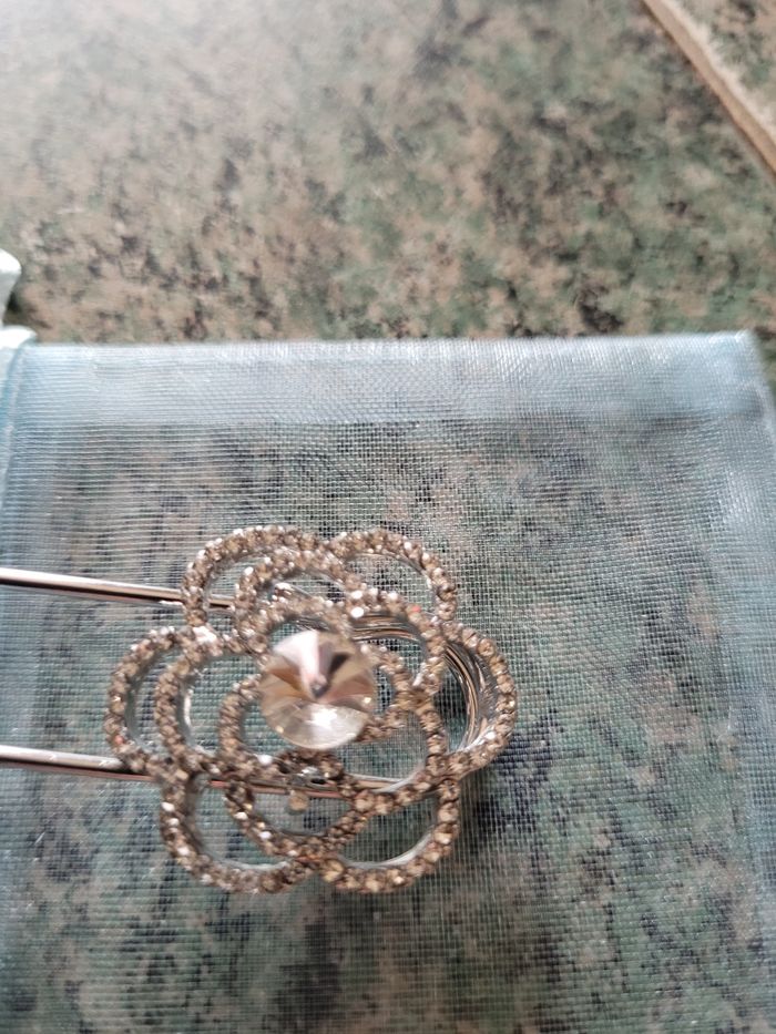 Épingle gilet argentée fleur avec strass - photo numéro 2