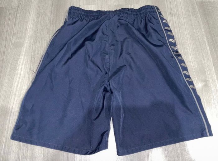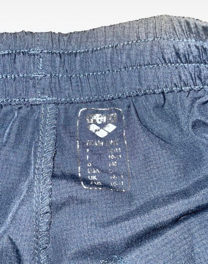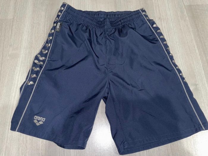 short ARENA bleu marine, matière « toile de parachute », étiquette peu visible mais short en très bon état, taille 10ANS