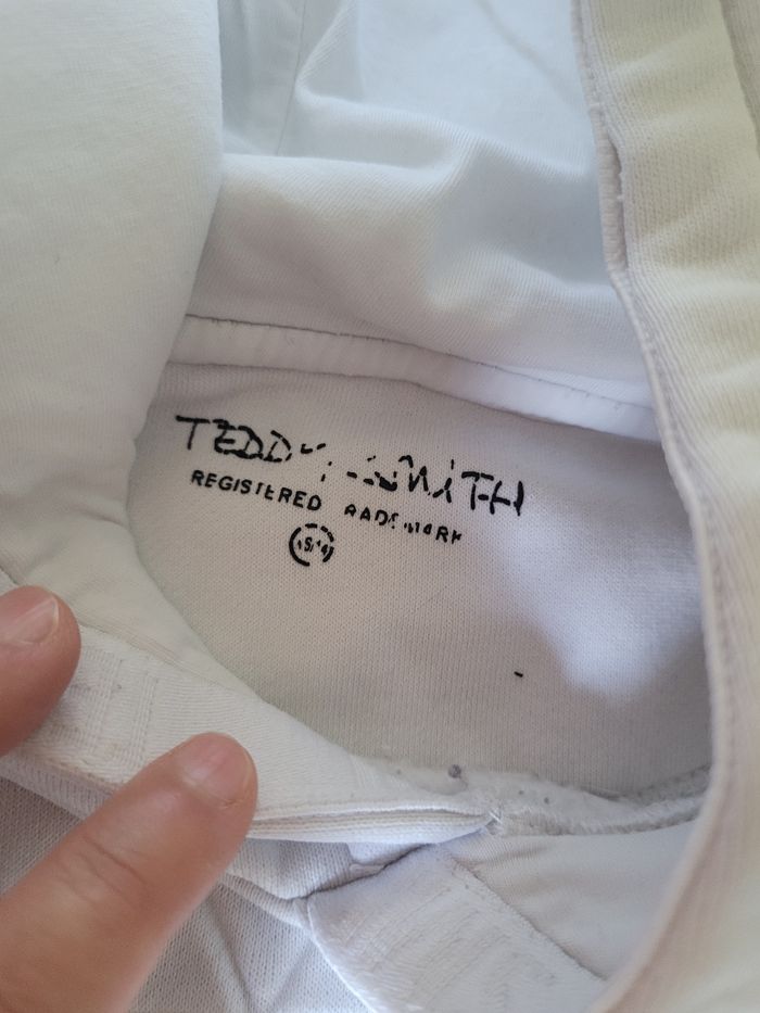 sweat teddy Smith 12ans blanc petite trace dans le bas du dos sinon bon état (3e)