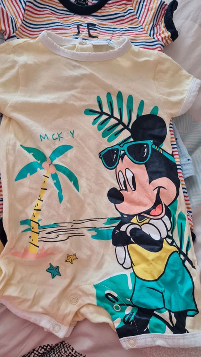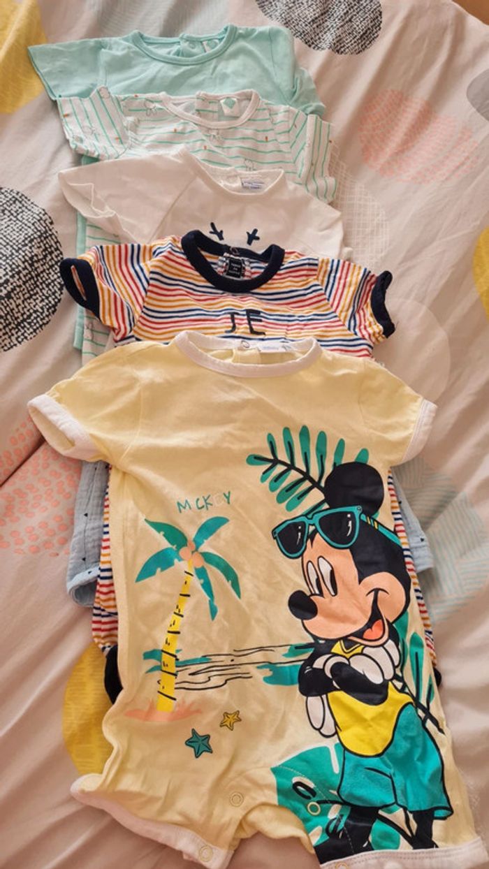 Lot de 5 combinaison short manches courtes taille 9mois Plusieurs marques 1 disney 1 ptit bisou 1 terre de marin et 2 tex