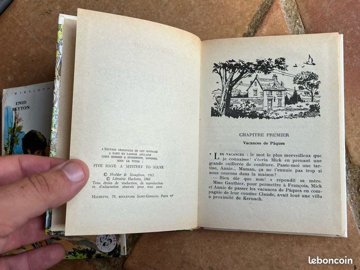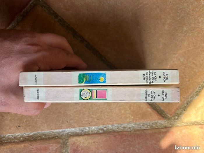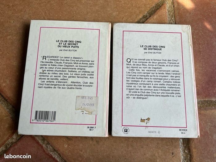 Vends lot de 2 livres de la « Bibliothèque Rose », Hachette, sur le Club des Cinq, d’Enid Blyton. Le prix est celui du lot qui pèse 315g. Possibilité à l’unité. Les titres sont: - le club des 5 et le secret du vieux puits (1966) : la couverture est en très bon état, feutre au verso de la couverture sinon intérieur très frais. Très bel exemplaire - le club des 5 se distingue (1980): légères traces sur couverture mais bon état général, feutre au verso de la couverture, pages légèrement décollées, mais en très bon état. Bel exemplaire