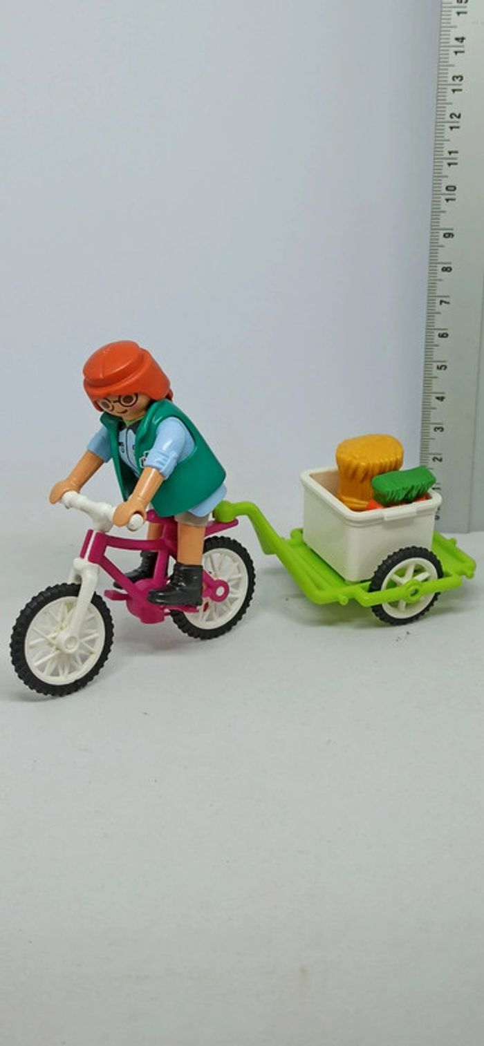 Femme soigneuse cycliste pour zoo avec vélo et remorque playmobil - photo numéro 1