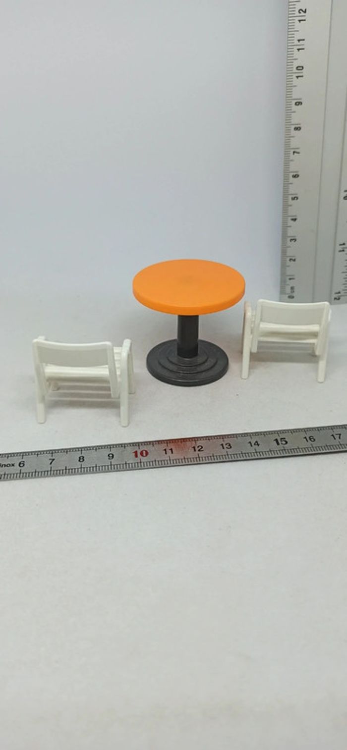 Table ronde orange avec chaises de jardin blanches playmobil - photo numéro 3