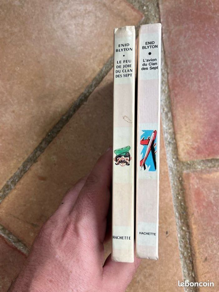 Vends lots de 2 livres de la « Bibliothèque Rose », Hachette, sur le Clan de sept, d’Enid Blyton. Le prix est celui du lot, qui pèse 315g. Me demander si à l’unité. Les titres sont : - le feu de joie du clan des sept (1970): couverture en bon état général, pages légèrement décollées et trace de feutre au dos de la couverture, sinon très bon état général - l’avion du clan des sept (1964): couverture en bon état général, pages légèrement décollées, feutre au dos couverture et stylo, mais intérieur frais. Bel exemplaire