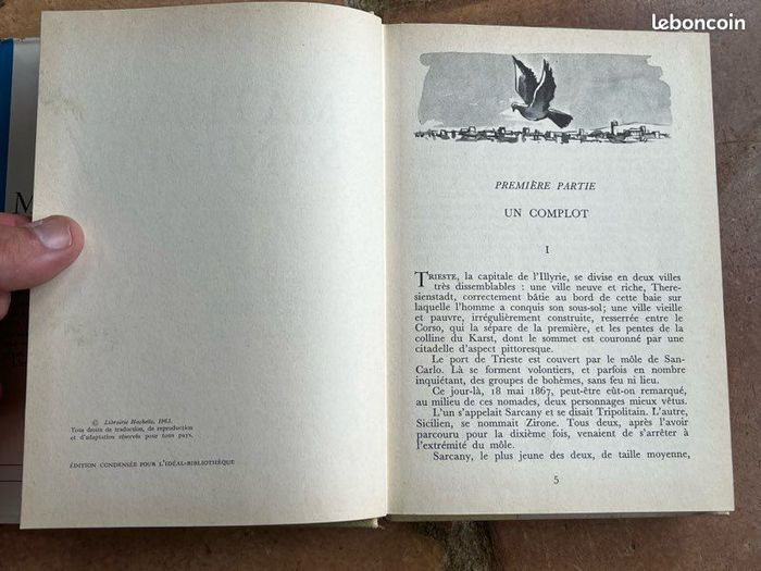 Vends lot de 2 livres de la collection « idéal-bibliothèque », Hachette. Le prix est celui du lot qui pèse 723g. Possibilité à l’unité, me demander. Les titres sont : - Mathias Sandorf (1963): la jaquette est marquée avec les manques, couverture en bon état général, intérieur très frais. Très bel exemplaire - les oiseaux d’Éléna (1967) : la jaquette présente des traces d’usure mais bon état général, couverture en bon état, intérieur très frais. Très bel exemplaire Idéal pour les enfants, nostalgiques ou collectionneurs.