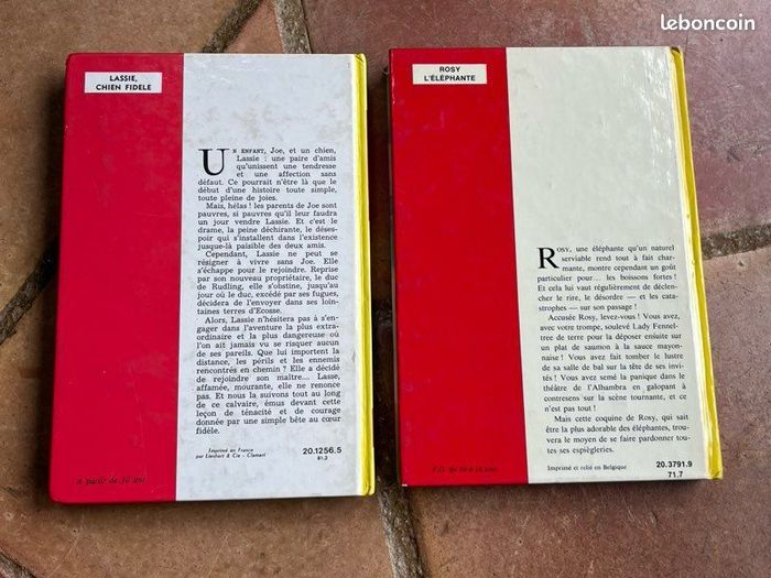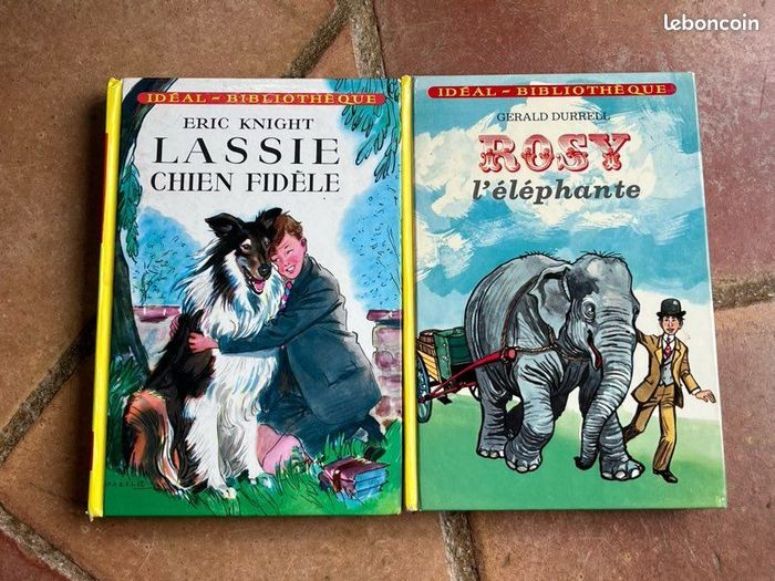 Vends 2 livres de la collection « idéal-bibliothèque », Hachette. Le prix est celui du lot, qui pèse 630g. Possibilité à l’unité, me demander. Les titres sont : - Lassie chien fidèle (1952): petite marque sur un angle de couverture, sinon exemplaire en parfait état - Rosy l’éléphanteau (1971): légères marques sur angles mais très faible, sinon exemplaire en parfait état Idéal pour les enfants, nostalgiques ou collectionneurs.