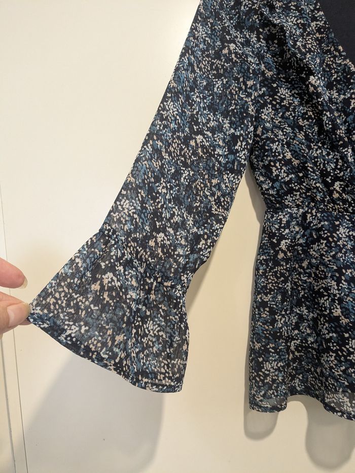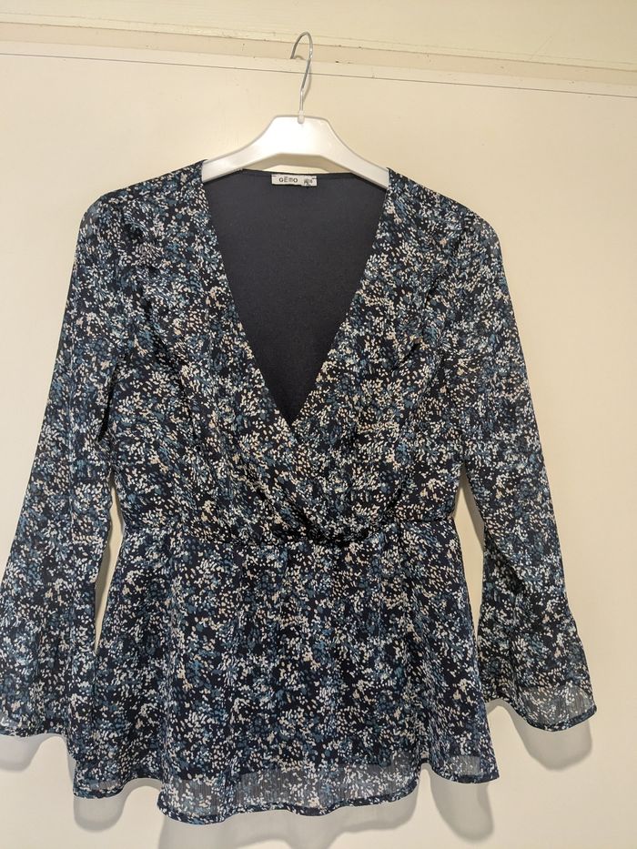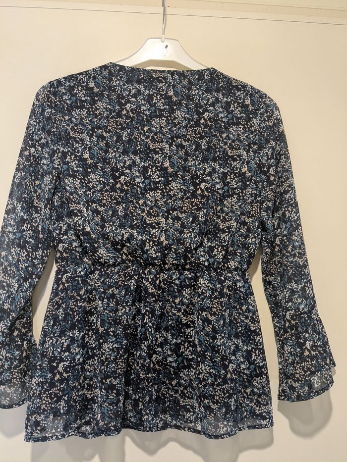 Blouse voilage bleue imprimé fleuri. Taille 36