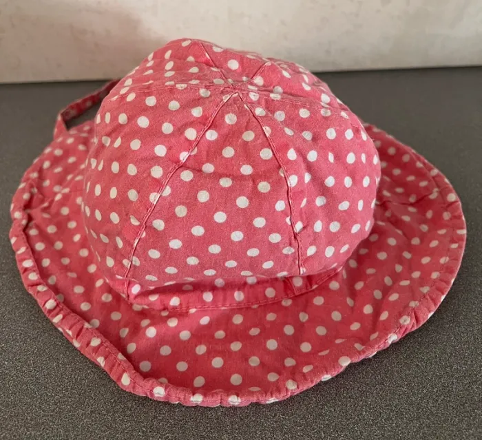 Beau chapeau rose à pois avec attache Taille 47cm Marque Orchestra Très bon état Catégorie : #alexiap30casquettechapeau