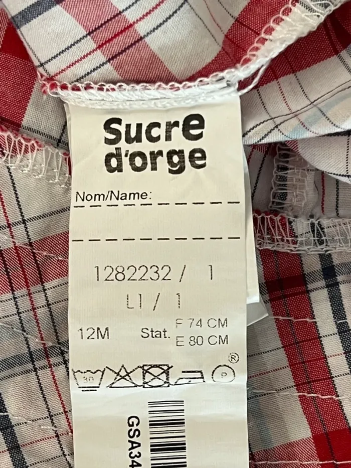 Bob chapeau à carreaux rouges taille 12 mois Sucre d’orge
