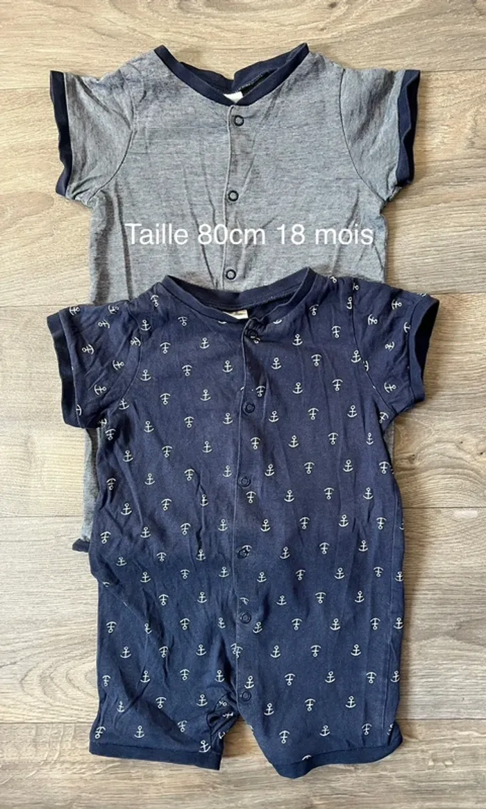 2 Pyjamas en jersey souple coton . Modèle avec manches et jambes courtes. Fermeture pressionnée devant et le long d'une jambe. Taille 80cm / 18 mois Marque H&M Très bon état 👍 Catégorie : #alexiap30taille18mois