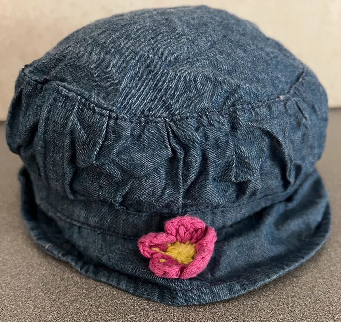 Chapeau jean avec petite fleur rose 🌺 taille 44cm - photo numéro 2