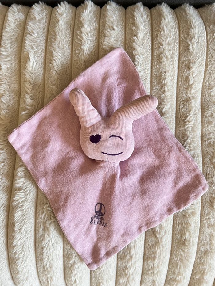 Doudou lapin plat violet rose l’amour et la paix - photo numéro 1