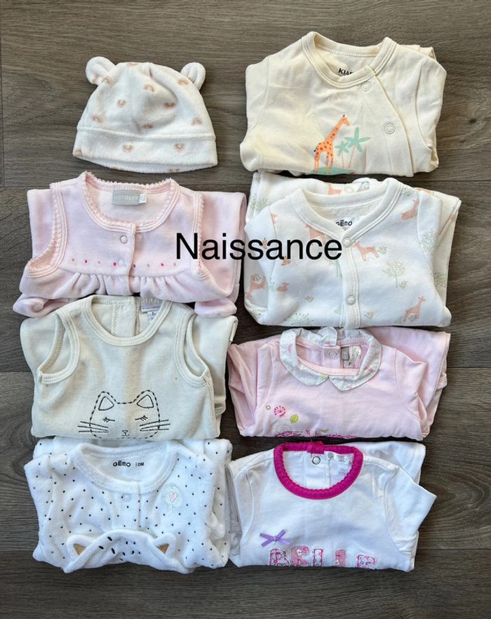 Lot de 7 pyjamas taille naissance dont 2 modèles sans manches 1 bonnet naissance Orchestra Gemo Natalys P’tit bisou Kitchoun L’ensemble en très bon état Catégorie : #alexiap30taillenaissance0