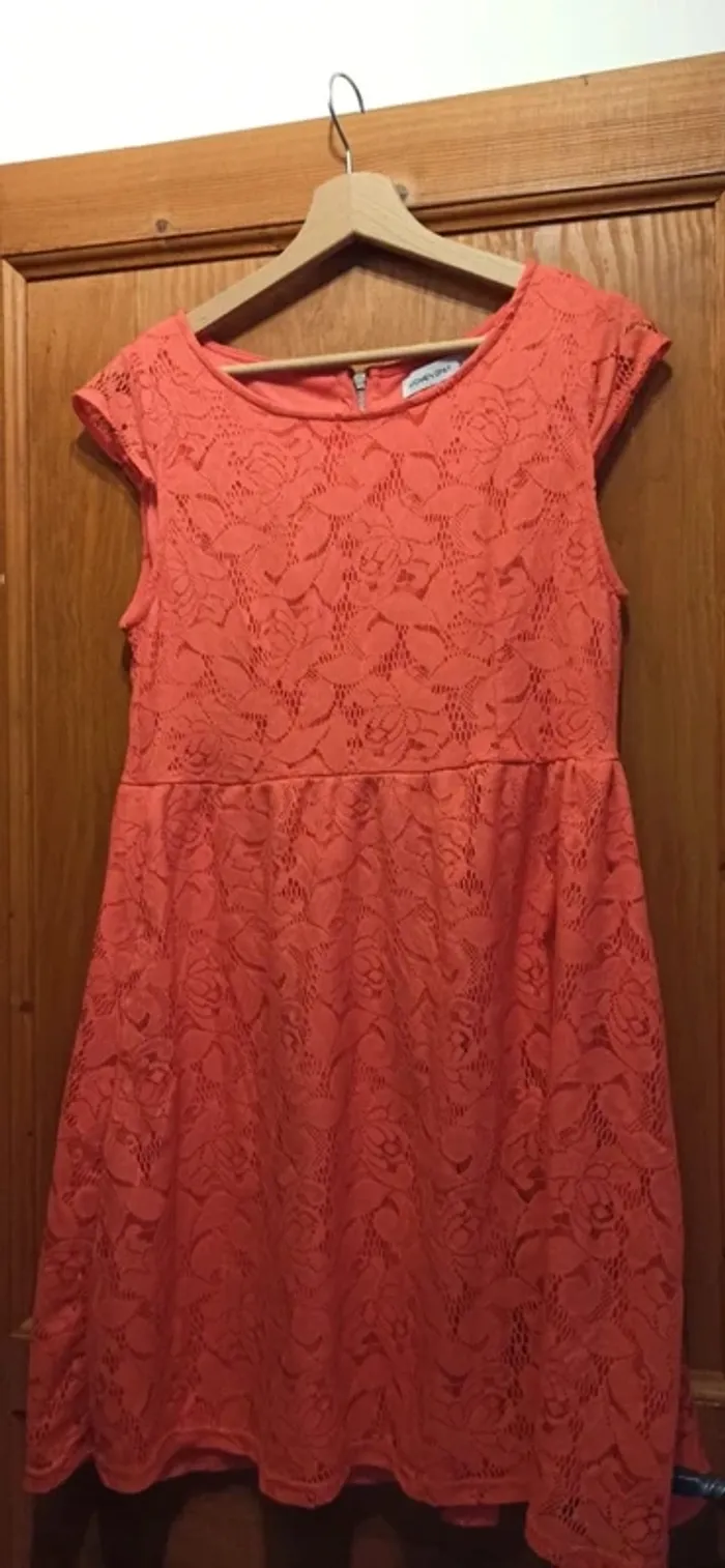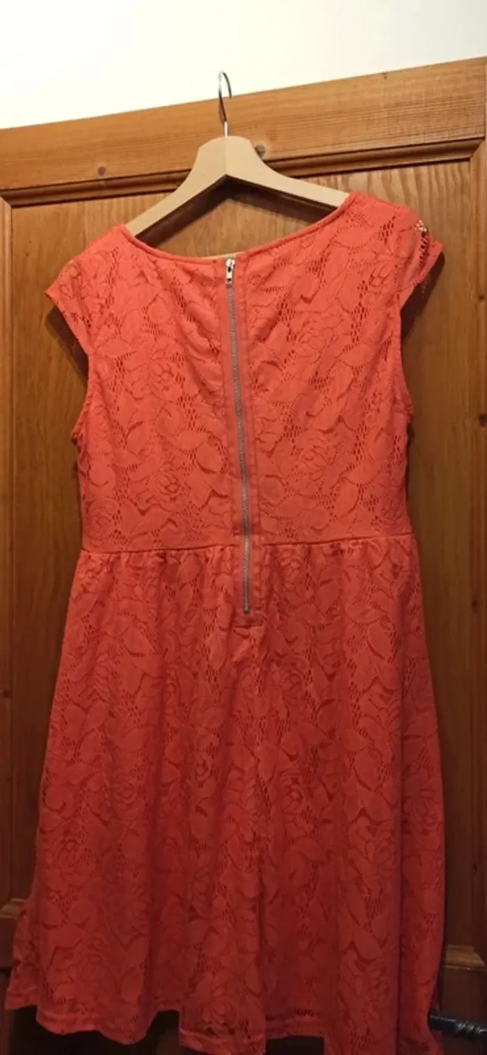 Robe corail à dentelle, avec fermeture éclair dans le dos, jupon, taille 3 (équivalent taille 38-40), jamais portée #robecorail38 #robedentelle38 #eloetgui_femme_taille38