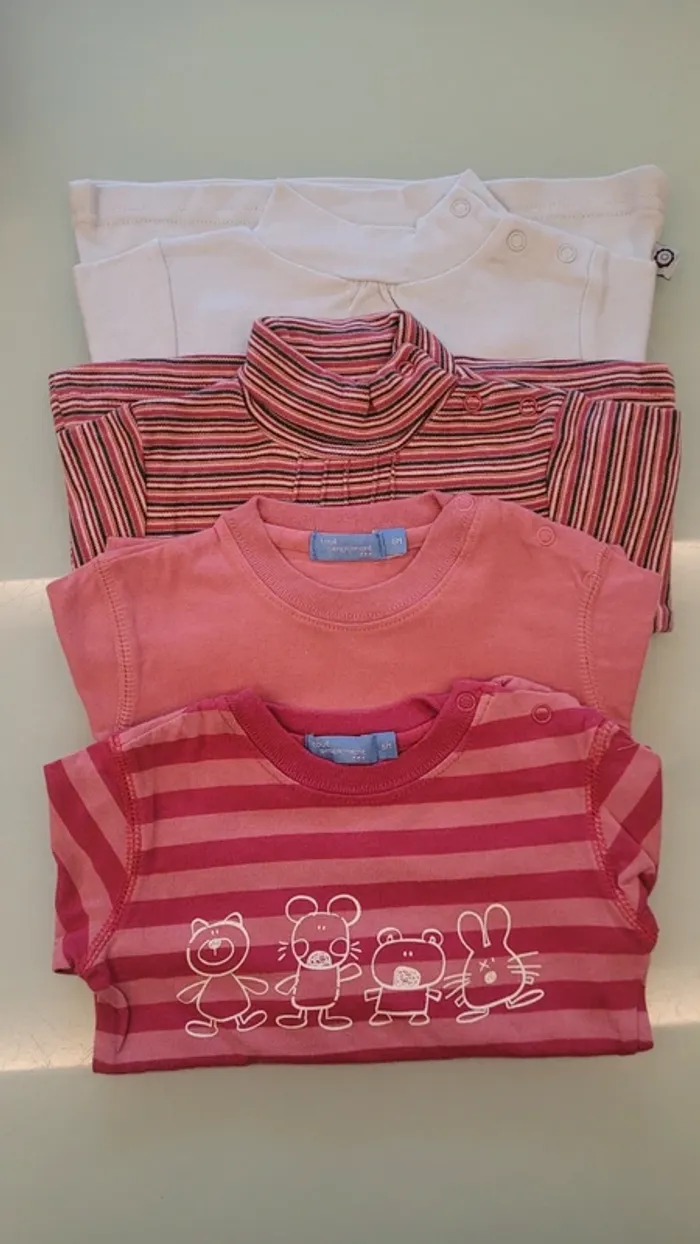 Lot 4 t-shirts manches longues 6mois/67cm 100% coton