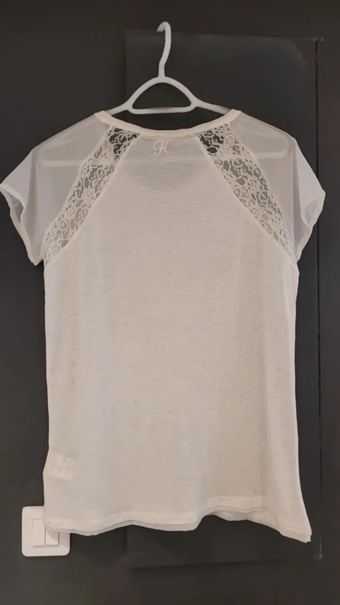 Tee-shirt écru manches courtes pailleté et dentelle - photo numéro 7