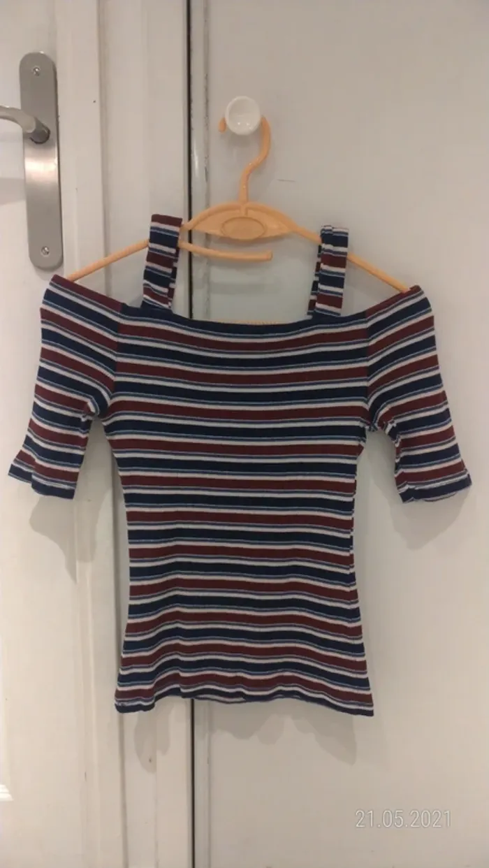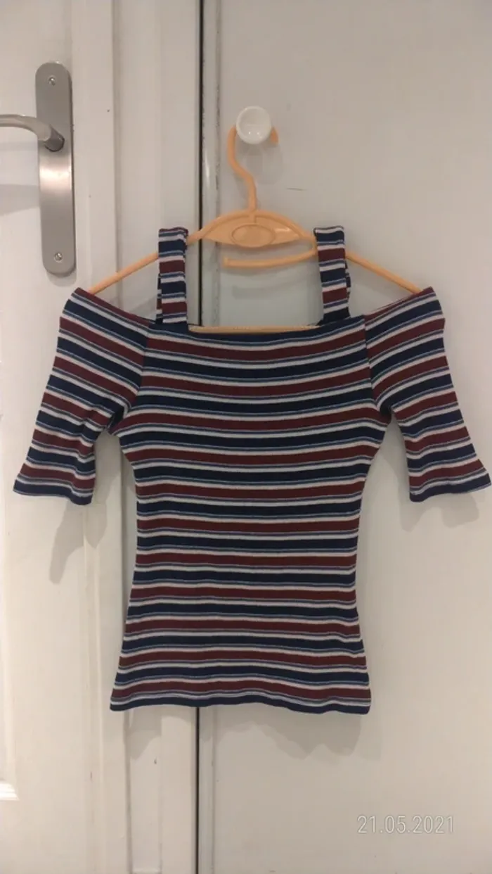 Top manches courtes rayés épaules dénudées - photo numéro 1