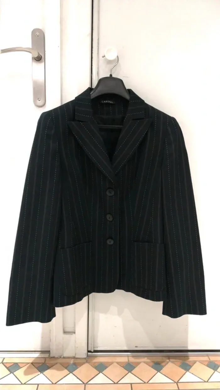 Blazer Veste tailleur noire rayures et pointillés - photo numéro 1