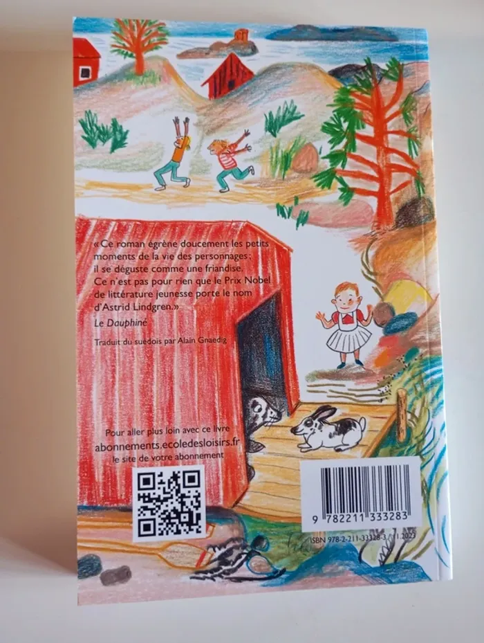 Pêcher, nager, bricoler, jouer ou rêver : les îles au large de Stockholm sont le lieu idéal pour toutes les aventures de l’été. C’est sur l’une de ces îles, Saltkråkan, que débarque la famille Melkerson, pour occuper une adorable vieille maison de vacances. Il y a le père, Melker, qui trouvera peut-être l’inspiration pour un prochain livre. La belle Malin, à qui les garçons font les yeux doux. Les intrépides Jonas et Niklas, prêts à toutes les audaces. Et le petit Pelle, qui adore les animaux et voudrait tellement en adopter un. Ça durera une journée, une saison ou une vie, qui sait ? Le temps qu’il faudra pour être heureux. Éditeur ‏ : ‎ Ecole Des Loisirs 368 pages Âge de lecture ‏ : Dès 8 ans Dimensions ‏ : ‎ 13.6 x 2.8 x 20.6 cm Livre état neuf Je vends d'autres romans de l'Ecole des Loisirs #phil_peg_écoledesloisirs ou d'Astrid Lindgren #phil_peg_astridlindgren #écoledesloisirs #astridlindgren #vacances #famille #île #été #stockholm #relationenfantadulte #campagne