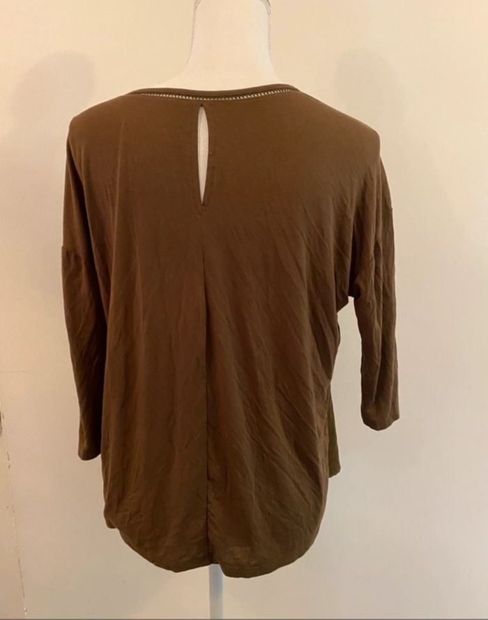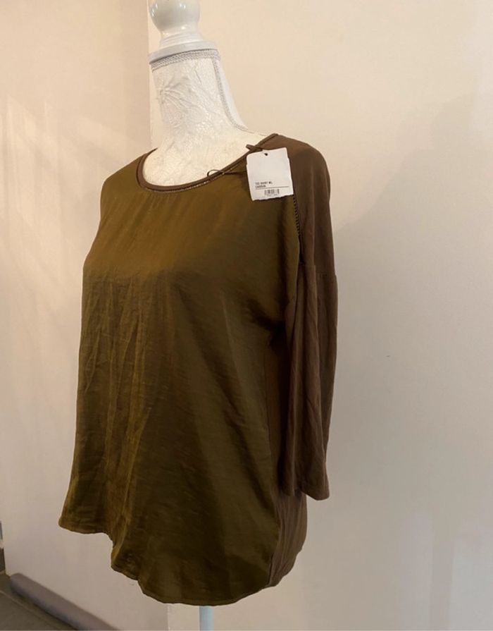 👕Taille S = 36 🧼 Très bon état - peu porté 📍 Marque : Camaïeu 🎨Couleur : kaki 🧶 Matière : 100% polyester 🔖 neuf avec étiquette ✅ Manche 3/4 💯 idéal pour un look casual et décontracté