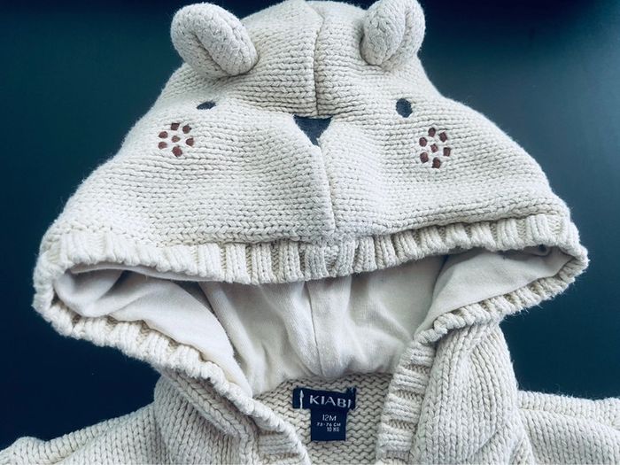 Gilet / pull ourson mixte à capuche de couleur beige/crème en taille 12 mois de la marque Kiabi neuf jamais porté #kiabi #bebe12mois #babyboy #12monthsboy #mixtebebe #12monthsboy #12months #12monaten #baby #giletbebe #pullbebe12mois #oursonbebe #neufsansétiquette