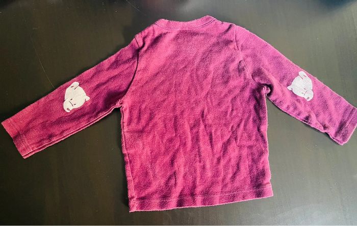 Tee-shirt manches longues de la marque Petit Bateau de couleur bordeaux en taille 18 mois avec les coudières en forme d’ours