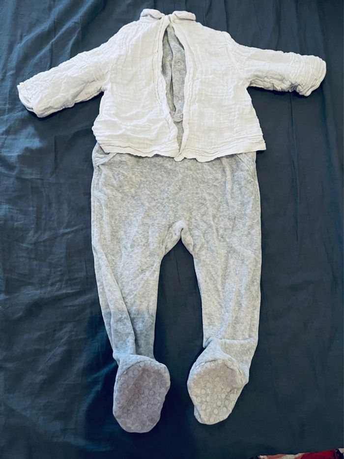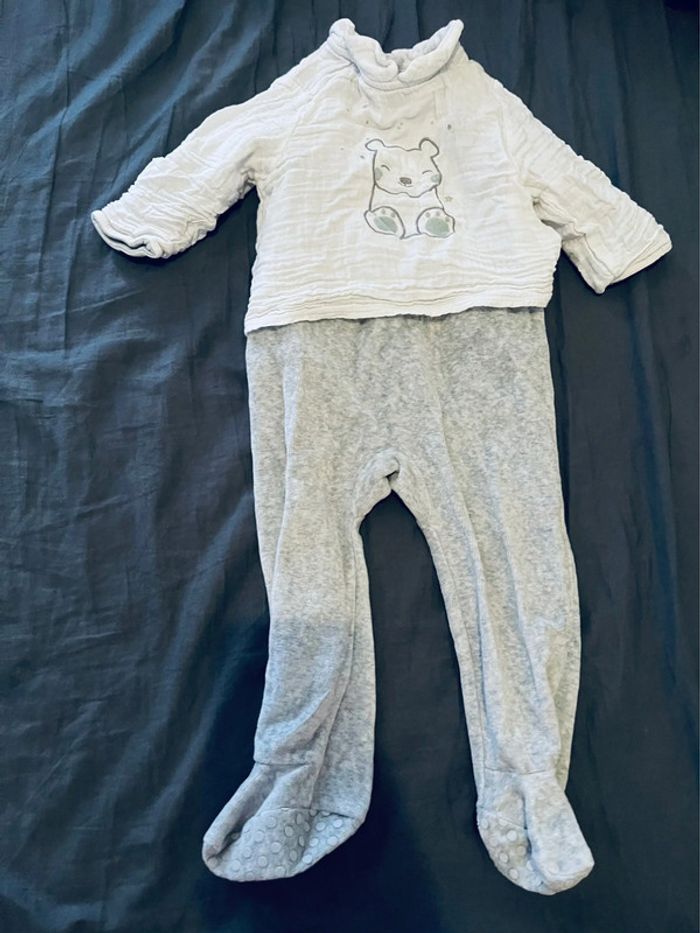 Pyjama mixte Verbaudet jamais porté en couleur gris et blanc en parfait état avec pieds anti dérapants