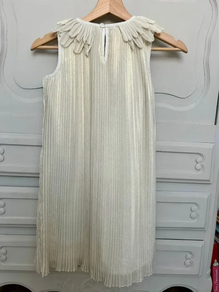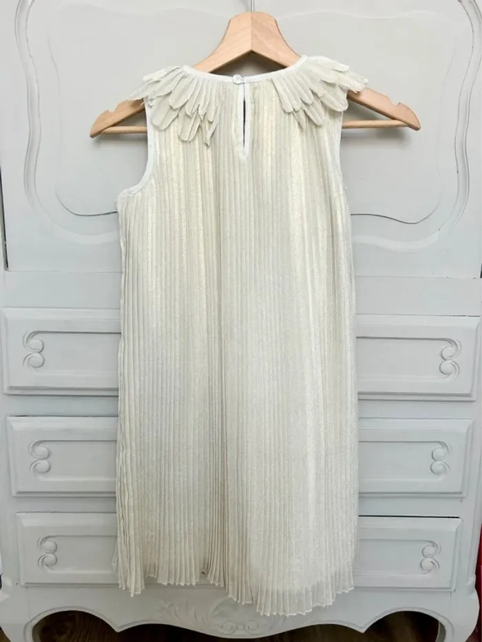 Robe Billieblush plissée beige et doré avec col Claudine papillon – Taille 8 ans – Très bon état