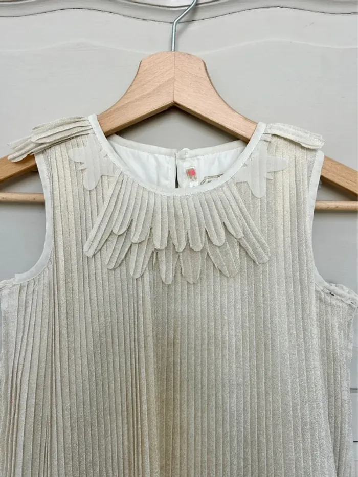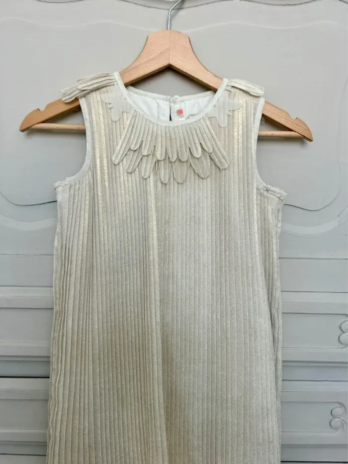 Robe Billieblush plissée beige et doré avec col Claudine papillon – Taille 8 ans – Très bon état - photo numéro 2