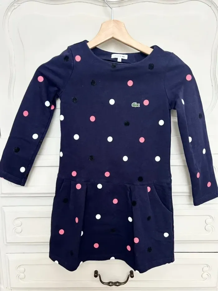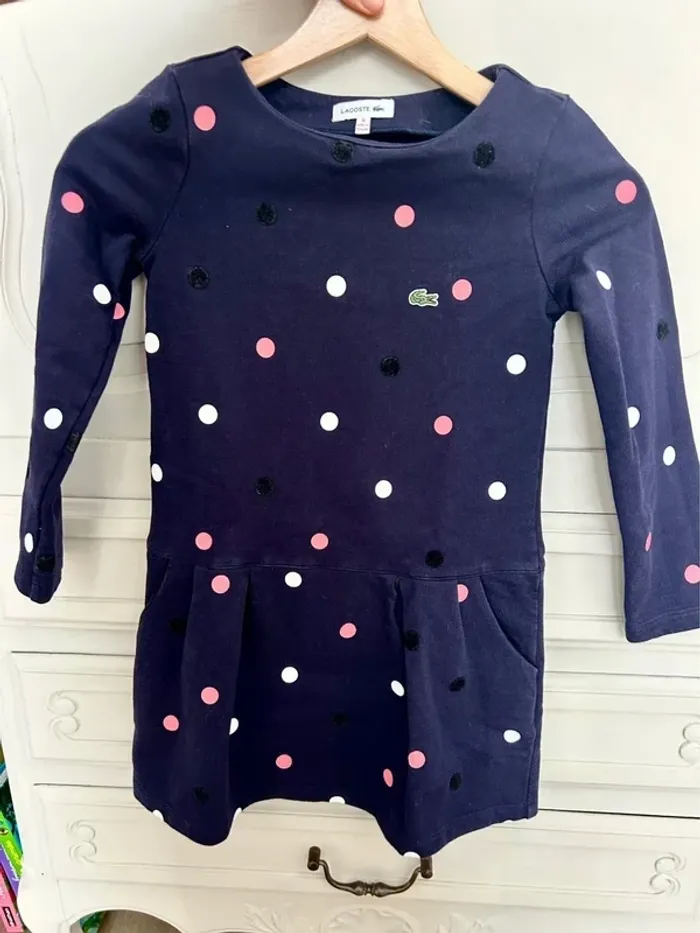 Très belle petite robe Lacoste bleu foncé à pois taille 8 ans - photo numéro 1