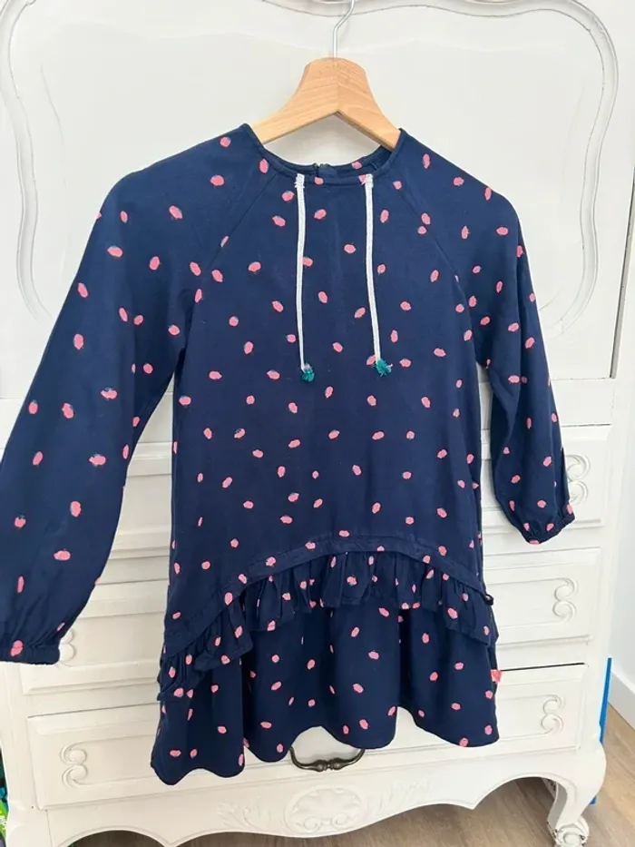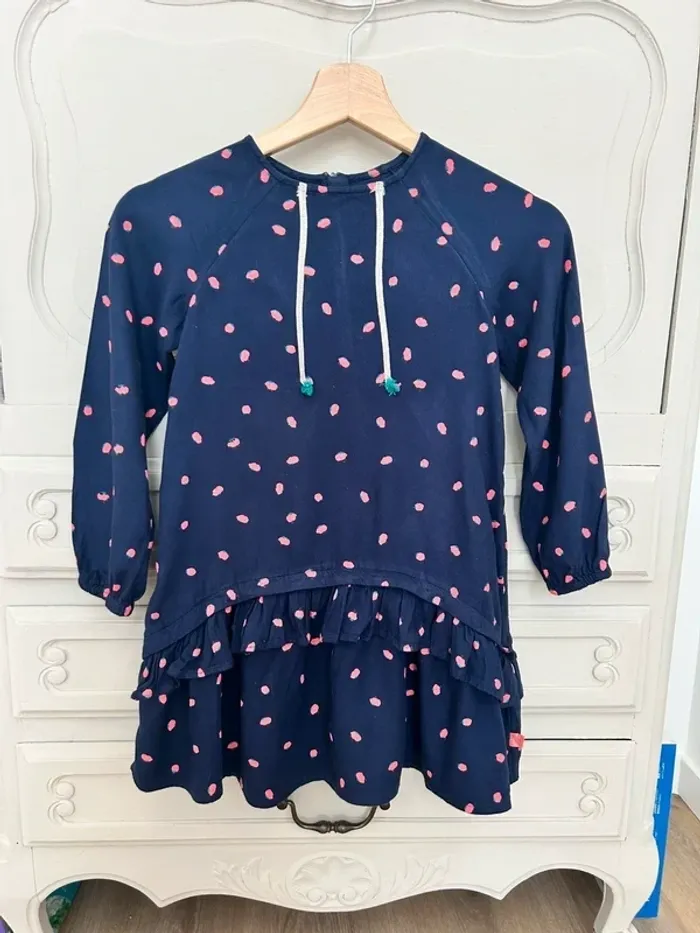 Magnifique robe manches longues à motif Acheté chez Billieblush Taille : 8 ans Couleur : bleu foncé , rose État : très bon état