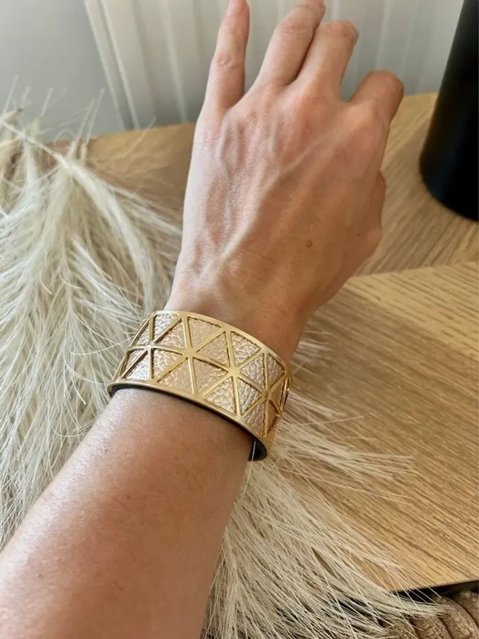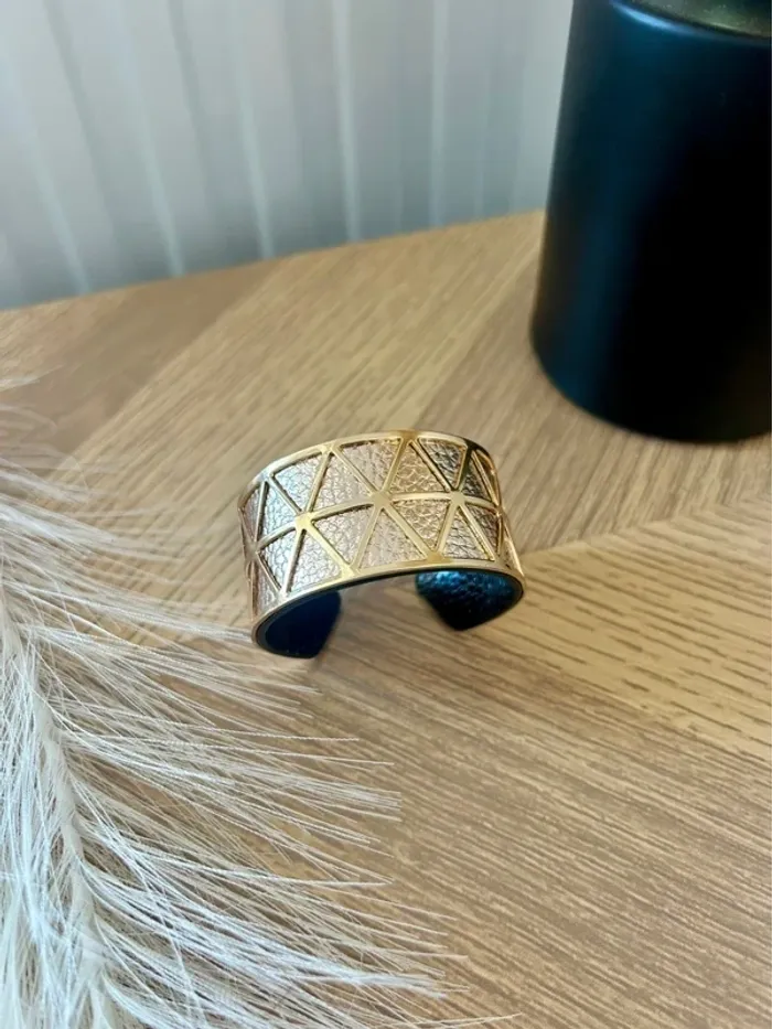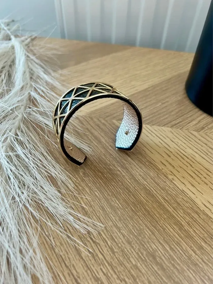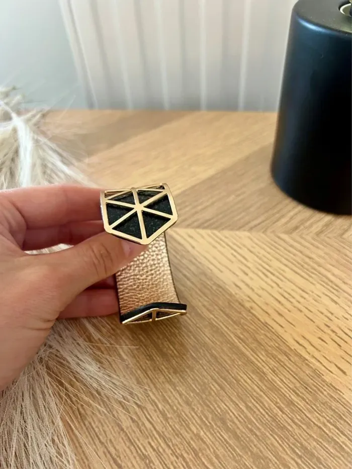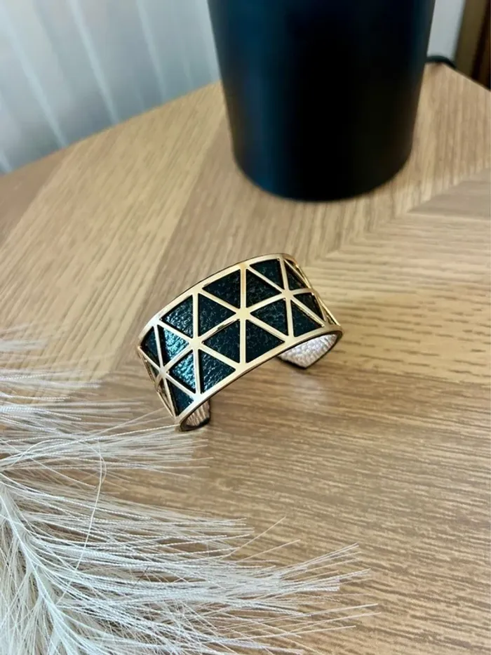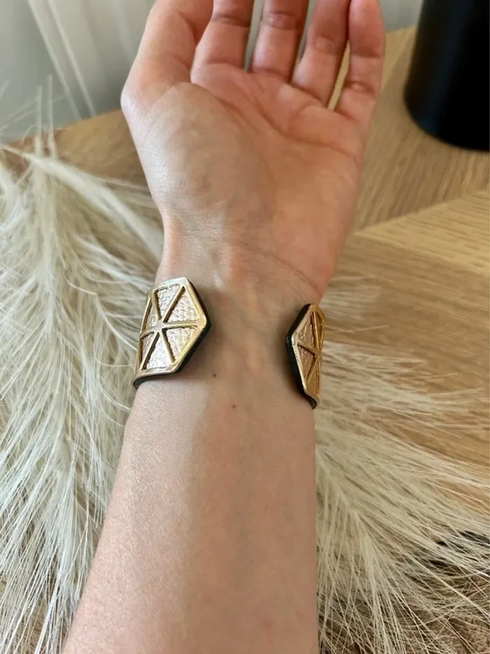 Superbe manchette dorée avec lien en simili cuir réversible : 🖤 Noir d’un côté 🌟 Doré de l’autre Largeur : 3 cm – un bijou chic et versatile pour sublimer toutes vos tenues. 💎 Neuf, jamais porté 💫 Inspiré du style des bijoux Les Georgettes #BraceletManchette #BijouDoré #StyleGeorgettes #BijouRéversible #NoirEtDoré #JamaisPorté #BijouxNeuf #AccessoireTendance #ModeFemme #VintedFrance