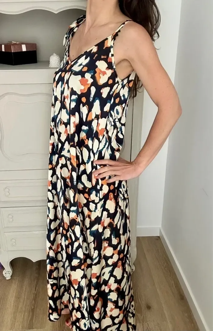 Magnifique robe longue à motif blanc bleu et orange Ikoone et Bianca taille 36-38 - photo numéro 7