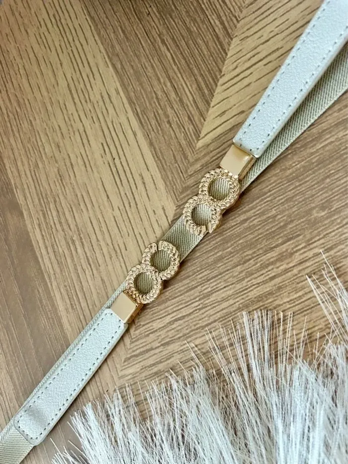 Ceinture élastique beige – boucle dorée triple anneaux Ajustable·Neuf sans étiquette