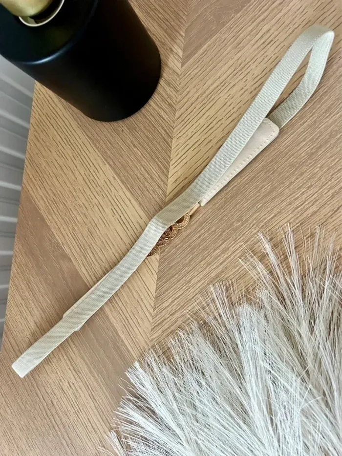 Ceinture élastique beige – boucle dorée triple anneaux Ajustable·Neuf sans étiquette - photo numéro 1