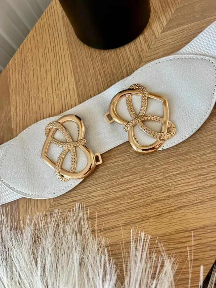 Ceinture large blanche et dorée –  Ajustable Neuf sans étiquette - photo numéro 1