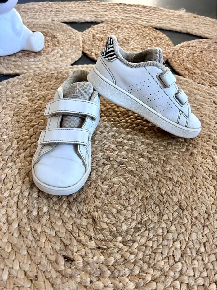 Chaussures baskets adidas blanc et zèbre pointure 25 - photo numéro 1