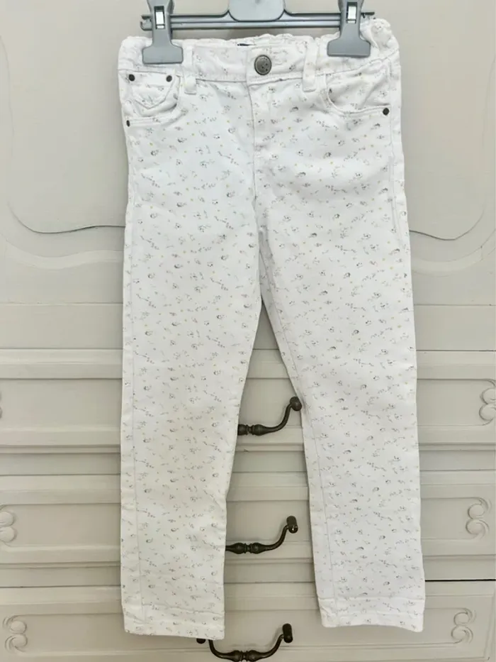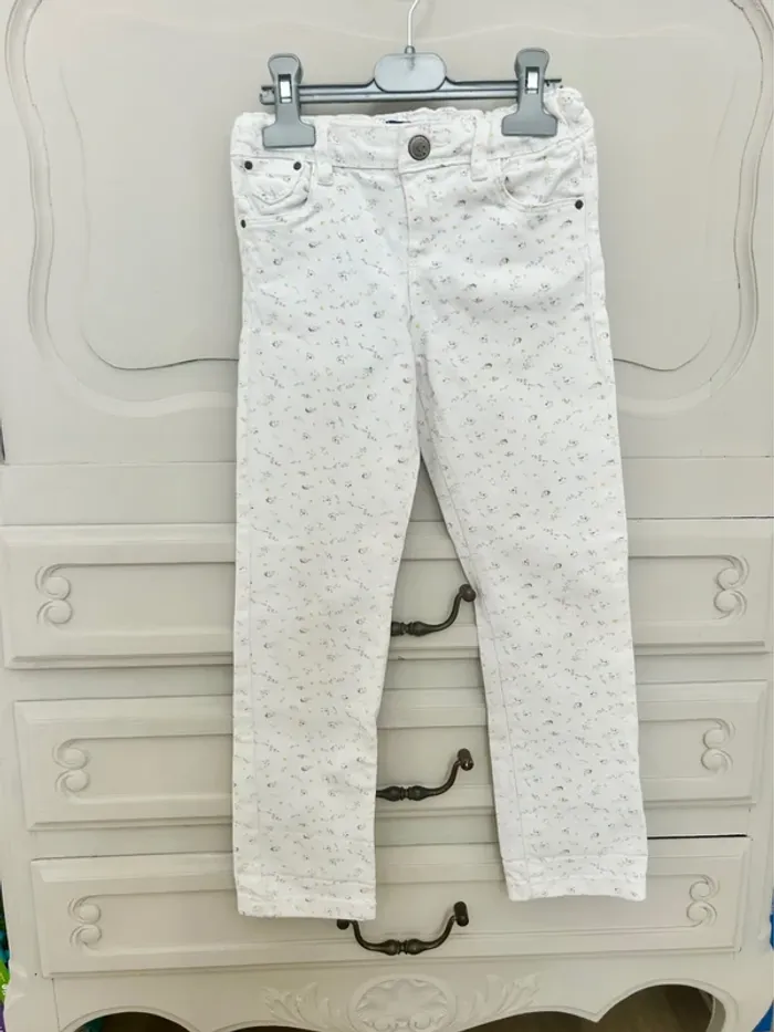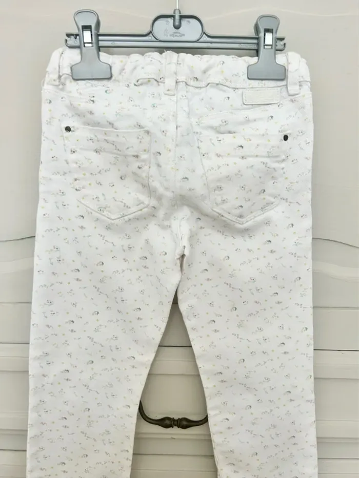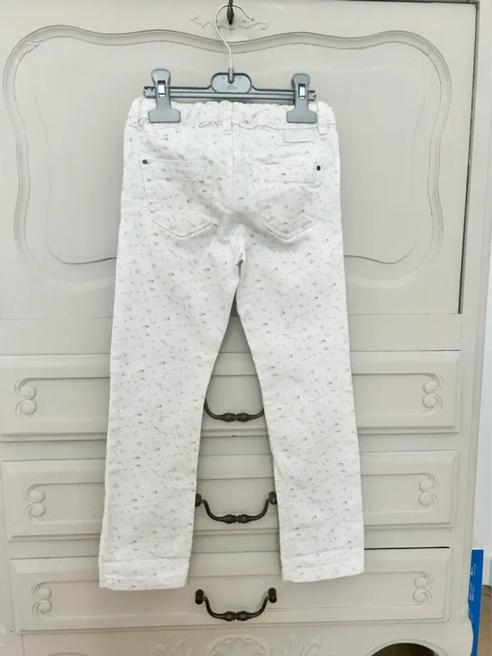 Très beau pantalon jean à fleurs blanc Okaidi taille 6 ans