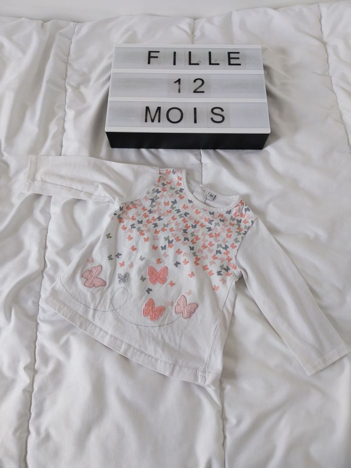 Tee-shirt manche longue fille 12 mois. En très bon état.