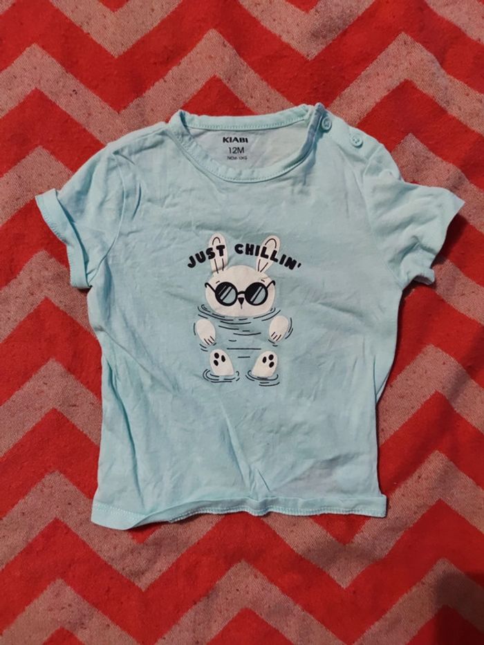 Vends t-shirt bleu ciel lapin just chillin Kiabi Taille 12 mois Ouverture au niveau du col Neuf jamais porté Sans tâche ni trou 🎁 Un cadeau offert pour toute commande + un cadeau supplémentaire par tranche de 10€ d'achat (hors frais de protection et frais de port)